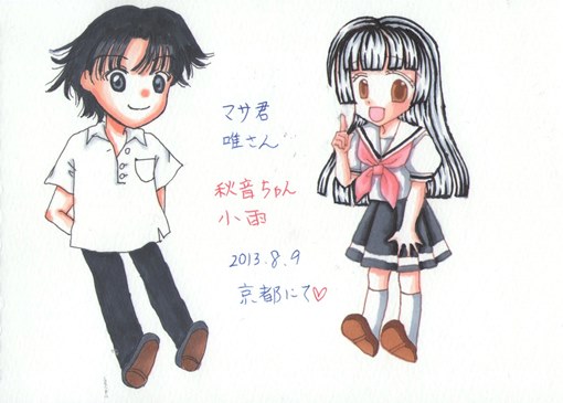 雅也の髪型はすっかり忘れてたので以前書いた秋音の小説の番外編で描いたイラスト見て「あーこんな寝癖みたいな髪型だったか」と思いつつ描きました(笑)