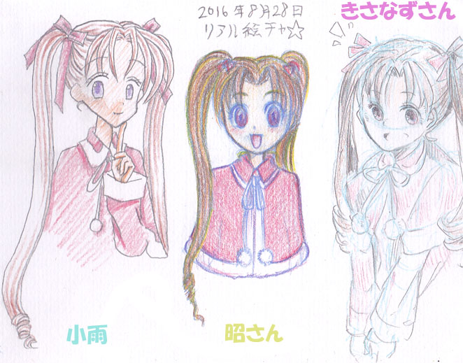 あえて3人同じキャラを描くのも面白いかなあと思いまして~^^