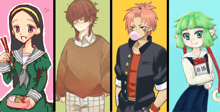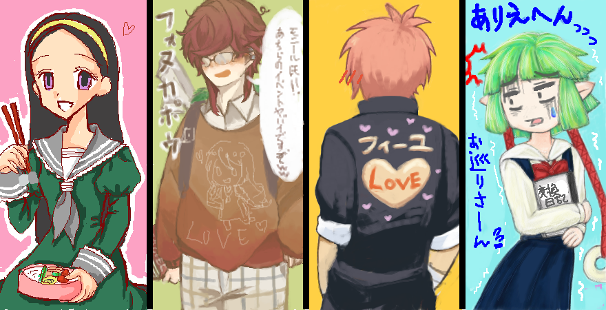 という訳で代表作()4人+指4本で、4周年お祝い絵!