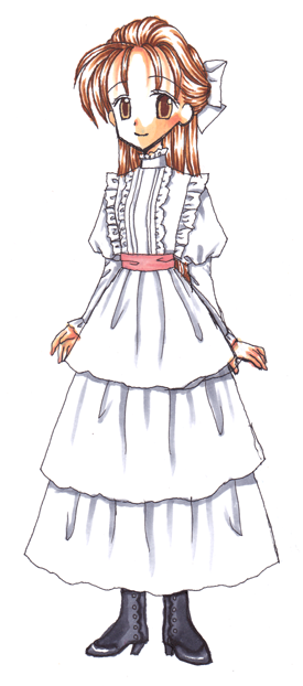 波津彬子先生が麗しの英国シリーズで描いてた様なやつ。頭にリボンもお約束ですね。