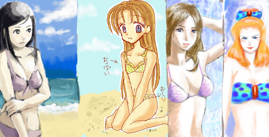 恥じらってそうな表情やポーズも可愛いです!海や空の色合いも夏らしくて素敵です!