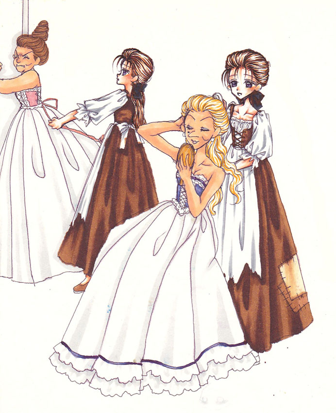 ディズニーのシンデレラとは真逆で継母達の意地悪にも大人しく堪え忍んでいます。