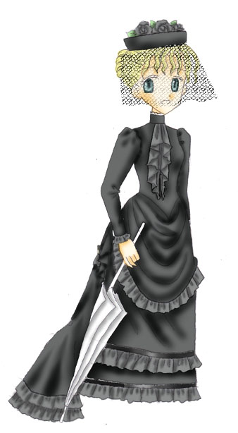 絵はバッスルスタイルの喪服とヴェールが描きたかった絵。