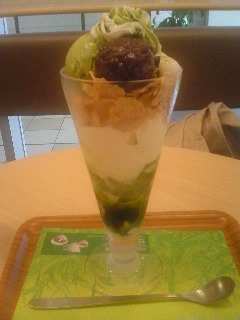 抹茶白玉パフェ。下の方の寒天の層になってる所がちょっと薄味だったけど、