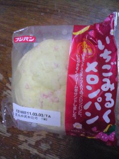 画像は昨日のメロンパンデーに買ったフジパンのいちごみるくメロンパン。