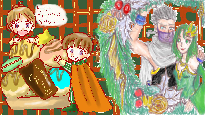 と言うことで茶眼さんとテーマ「クリスマス」で茶眼さんが最近クリアなさったFF4絵チャですーv
