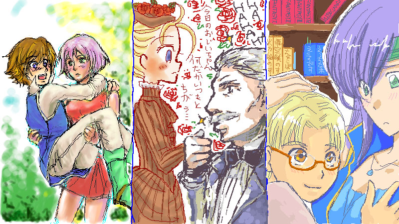 まず描くキャラをアミダで決めて、その後カップリングをアミダで決めた結果この組み合わせに。