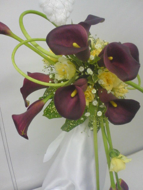濃い紫色のカラーのお花。カラーというと白のイメージだったんですが、紫もあるんですねー