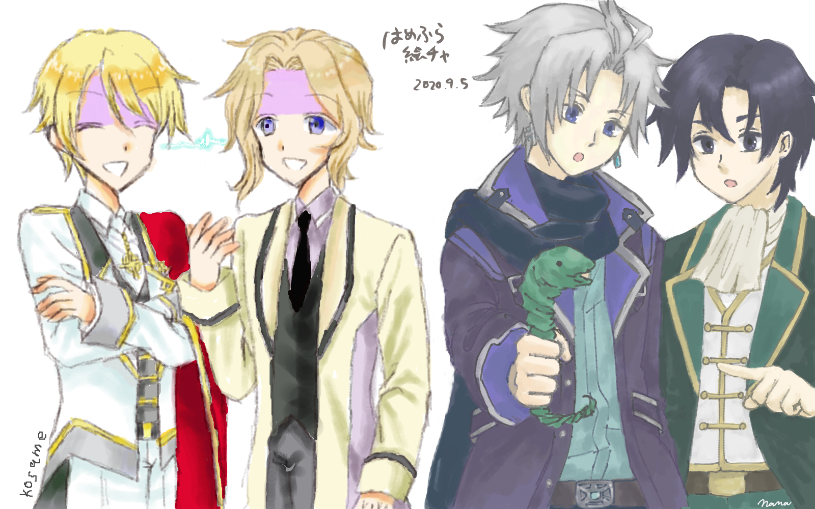 相談するアランとニコルの後ろで火花を散らすジオルドとキースに見えてふふってなります♪