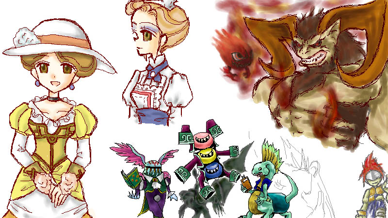 しーちょいさんは右のイフリートとボム、四本腕の男を描かれていらっしゃいました。