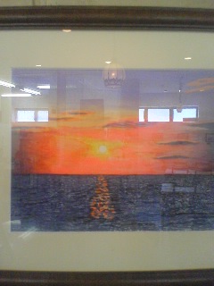 そしてこの海に沈みゆく夕日の絵!夕日を照り返してる水面が幻想的な美しさを醸し出しててとっても素敵なのです~写真は光が写り込んでしまって見えにくいですが;;