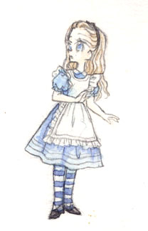 イラストは私が思い描く理想のアリス像。アリスのエプロンドレスはこういう少し青紫がかった水色が理想なのですが、アナログでもデジタルでもなかなか思うような色がだせません;;