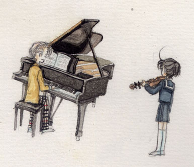 透子とはヴァイオリンのコンクールで知り合う。ヴァイオリンの弾き方は繊細で叙情的、