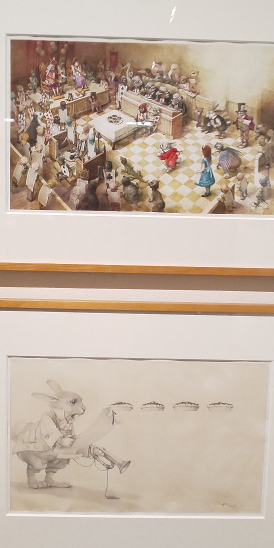 古今の画家、イラストレーターによるアリスの挿し絵コーナーが。写真撮影OKが嬉しい(≧∀≦*)