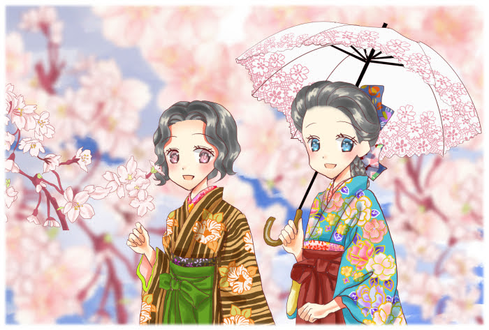 去年の袴絵と比べて二人が幼く体も縮んじゃったのが残念ですが、