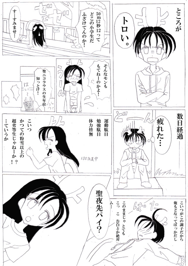 2ページ目のコマ運び詰め込みすぎて分かりづらい…;;(ネーム位描きましょう)
